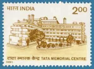 Image: A postage stamp issued by India Post in 1991 to commemorate the Golden Jubilee of Tata Memorial Centre. Image courtesy Indian Philately.