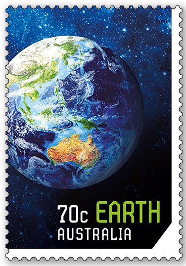 Image above: Postage stamp of Planet Earth, part of eight spectacular planets featured in Our Solar System set of Australia, 2015, courtesy Australia Post.