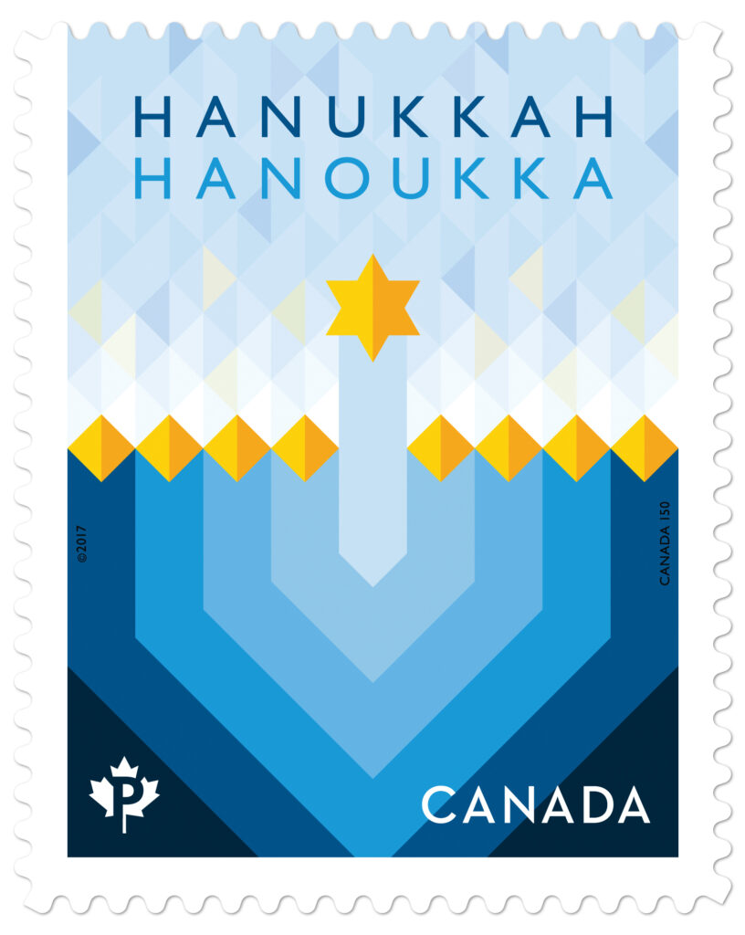 Image: Canada Post issued its first postage stamp on Hanukkah, the Jewish festival of lights, in 2017. Image courtesy The Times of Israel.